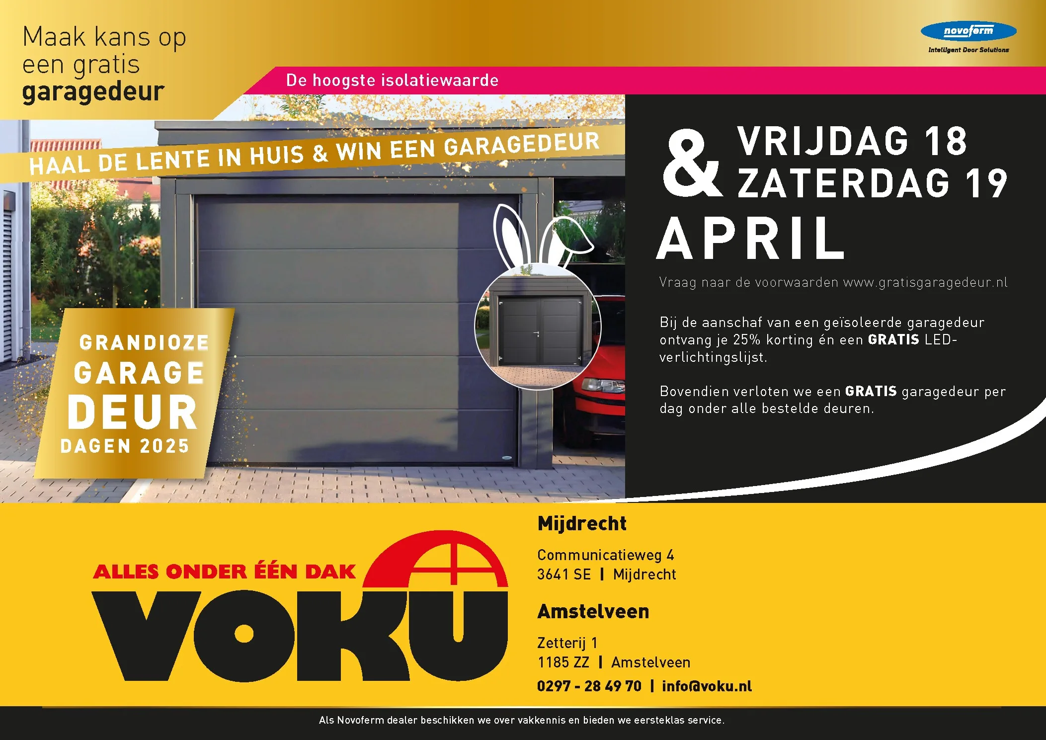 Duurzaamheid betekent bij ons ook kwaliteit: onze garagedeuren van Novoferm zijn ontworpen om jaren mee te gaan, bestand tegen alle weersomstandigheden en betrouwbaar, dag in, dag uit. Actie geldig tot 31 december 2025.